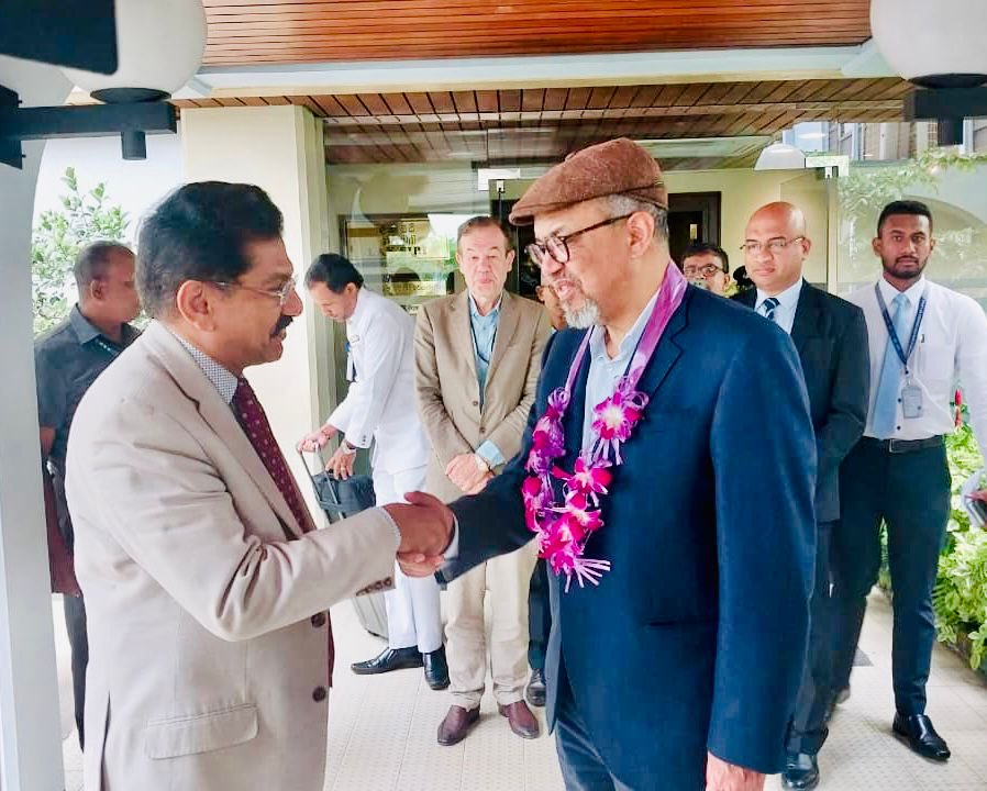 World Health Organization (WHO) Director-General Dr. Tedros Adhanom Ghebreyesus arrived in Sri Lanka this morning at 9:40 a.m. from Doha. He was welcomed at the Bandaranaike International Airport by Health Secretary Dr. Anil Jasinghe.